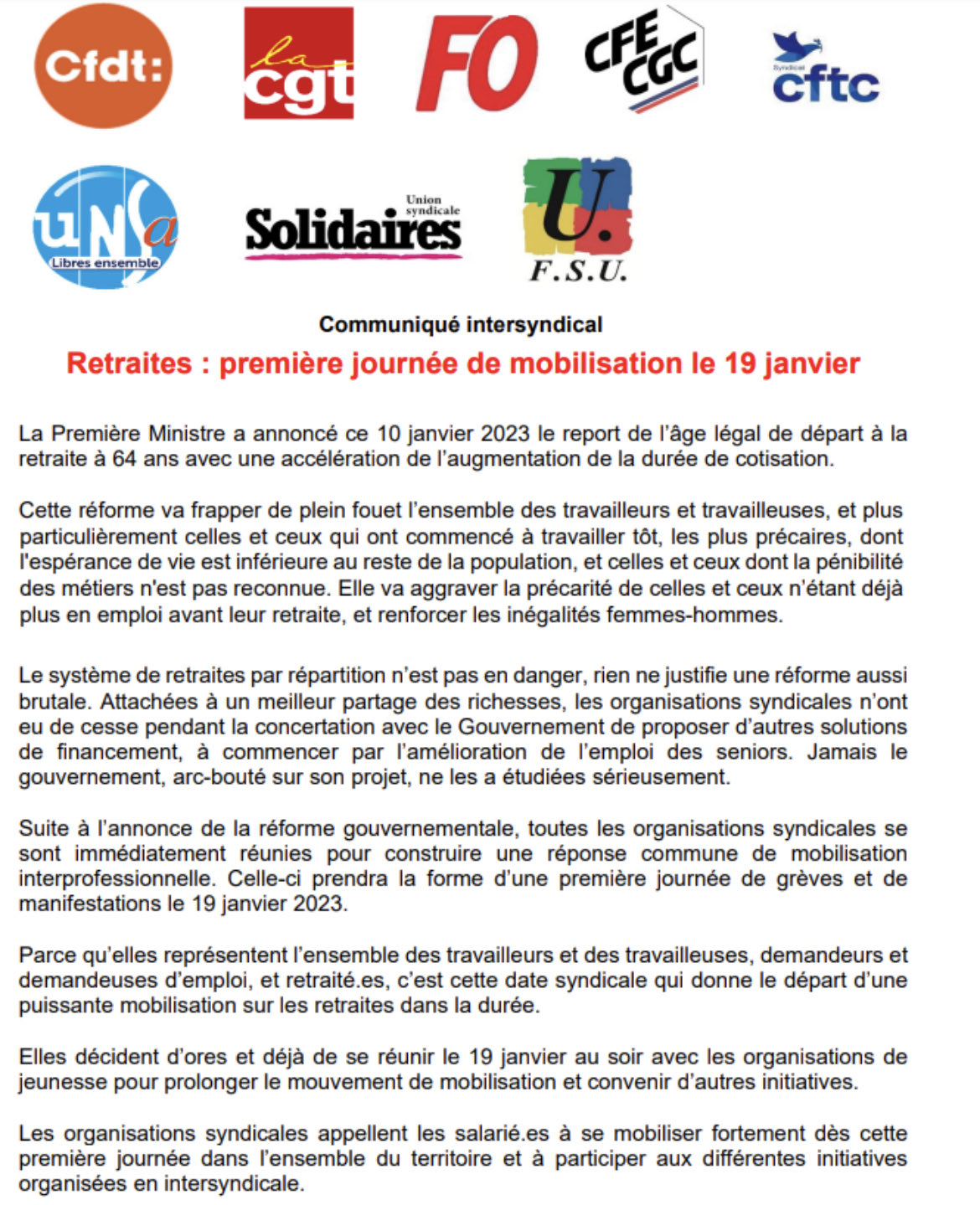 Retraites – Nous appelons donc les salariés à se mobiliser massivement dès le 19 janvier sur tout le territoire. Powered by WPeMatico